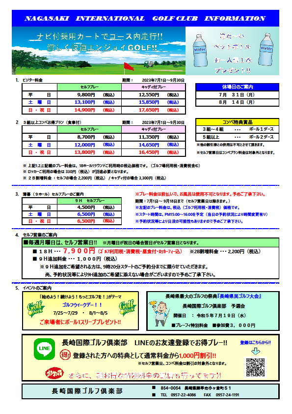 ※セルフ営業日はセルフデー料金となりますのでコンペ料金は対象外となります。